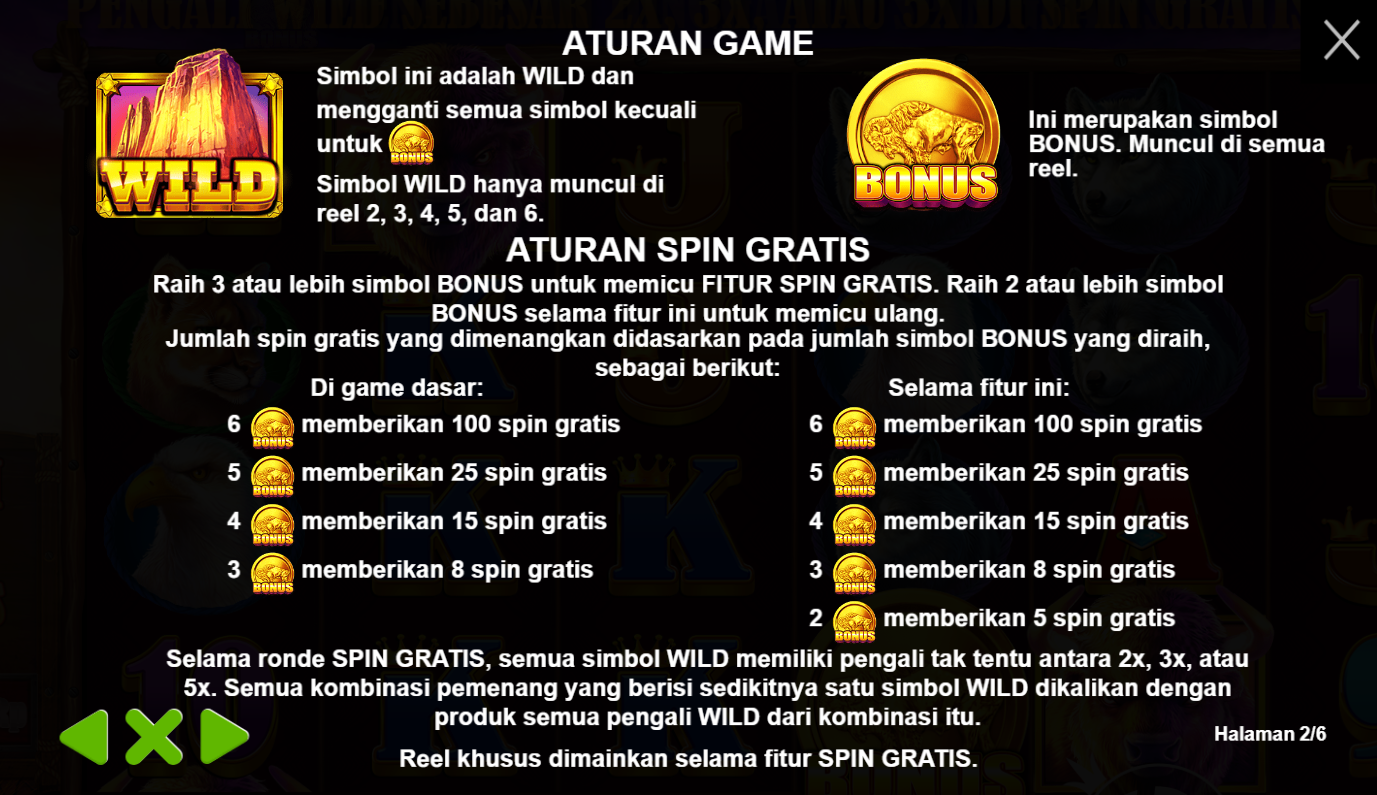 Buffalo King adalah sebuah permainan slot online yang dibuat oleh Pragmatic Play. Game ini memiliki tema hewan liar Amerika Serikat dan fitur-fitur seperti simbol Wild, Scatter, putaran gratis, dan pengganda (multiplier). Dalam game slot Buffalo King, pemain akan melihat simbol-simbol seperti bison, beruang coklat, elang, serigala, dan kucing liar di gulungan permainan. Pemain akan memenangkan hadiah jika mereka berhasil mencocokkan simbol-simbol ini pada garis pembayaran yang aktif. Simbol-simbol khusus seperti Wild (dengan gambar bison) dan Scatter (dengan gambar koin emas) juga dapat membantu pemain mendapatkan lebih banyak kemenangan. Wild dapat menggantikan simbol lain untuk membentuk kombinasi kemenangan, sedangkan Scatter dapat memicu putaran gratis ketika tiga atau lebih muncul pada gulungan. Buffalo King juga memiliki fitur pengganda (multiplier) selama putaran gratis, yang dapat meningkatkan kemenangan pemain hingga 5 kali lipat. Game ini memiliki volatilitas tinggi, yang berarti bahwa kemenangan besar tidak terjadi terlalu sering, tetapi ketika terjadi, hadiahnya dapat sangat besar.