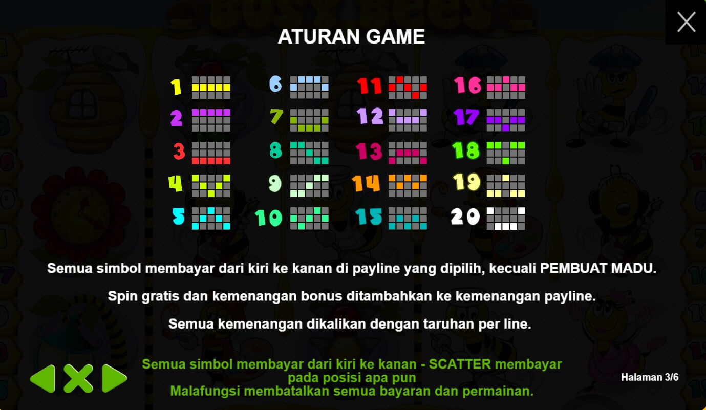 Busy Bees adalah game slot yang dikembangkan oleh perusahaan perangkat lunak Pragmatic Play. Game ini mengusung tema lebah dengan tampilan yang cerah dan menggemaskan.Busy Bees menghadirkan nuansa alam dengan fokus pada kehidupan lebah. Simbol-simbol dalam game ini mencakup karakteristik lebah seperti ratu lebah, pekerja lebah, sarang lebah, madu, serta simbol-simbol bunga dan sarang lebah. Game ini menggunakan format gulungan tradisional 5x3 dengan 10 jalur pembayaran yang dapat diaktifkan. Pemain akan mencoba mencocokkan simbol-simbol yang sesuai di jalur pembayaran untuk memenangkan hadiah. Busy Bees menawarkan fitur-fitur khusus seperti simbol liar (wild) yang dapat menggandakan kemenangan, putaran gratis dengan pengganda (multiplier), serta fitur "Click Me Bonus" yang memungkinkan pemain memilih ikon lebah untuk mengungkapkan hadiah-hadiah tersembunyi. Busy Bees menampilkan desain grafis yang cerah dan menggemaskan dengan latar belakang yang memperlihatkan padang bunga yang indah. Simbol-simbol dalam game ini memiliki desain yang lucu dan menghadirkan karakter lebah dengan ekspresi yang menghibur. Animasi yang halus dan efek suara yang menyenangkan digunakan saat gulungan berputar atau saat terjadi fitur-fitur khusus, menambahkan keseruan dalam pengalaman bermain.