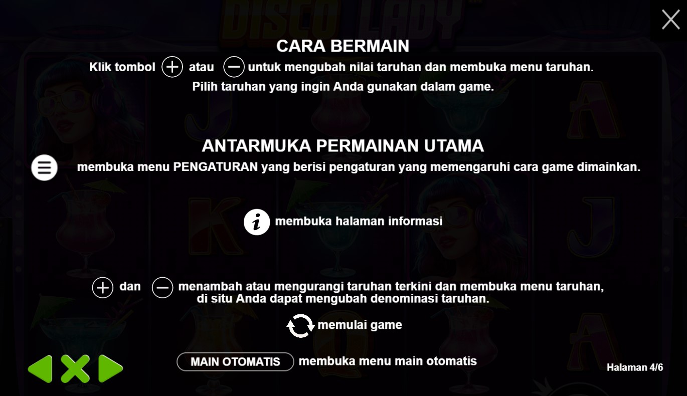 Disco Lady adalah game yang dikembangkan oleh studio Pragmatic Play yang diakui. Dirilis pada 19.04.2022 itu menjadi sukses instan di antara para pemain karena mesinnya yang imersif dan karya seni yang luar biasa. Ulasan ini menjelaskan semua karakteristik utamanya yang bersama dengan mode uji gratis yang tersedia di clashofslots.com memberikan gambaran bagus tentang pengalaman yang akan Anda dapatkan. Disco Lady adalah mesin slot bergaya disko dengan lima gulungan dan 243 cara untuk menang. Simbolisme slot Disco Lady sepenuhnya konsisten dengan tema yang dipilih, pada gulungan Anda akan menemukan berbagai koktail, seorang gadis dengan headphone dan nama kartu. Juga di slot Disco Lady terdapat simbol liar (bintang neon) – ini berfungsi untuk menggantikan simbol biasa dan simbol pencar (bola disko) dengan bantuannya Anda akan menjadi peserta dalam putaran gratis.