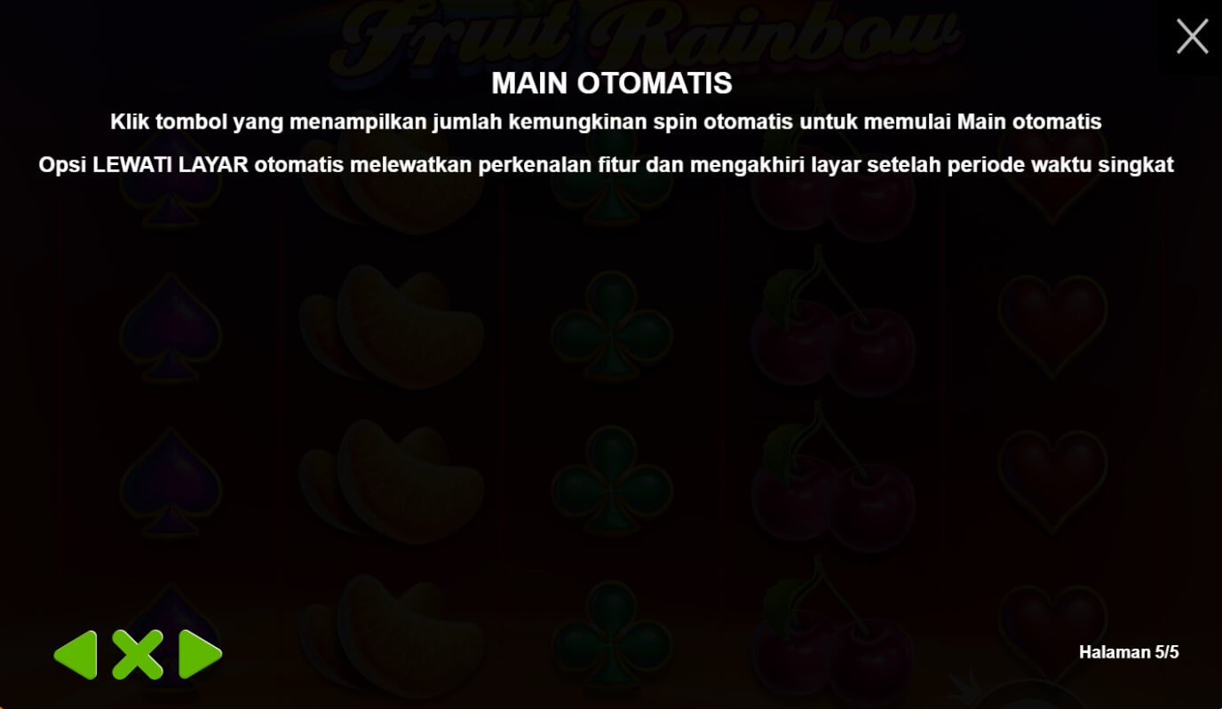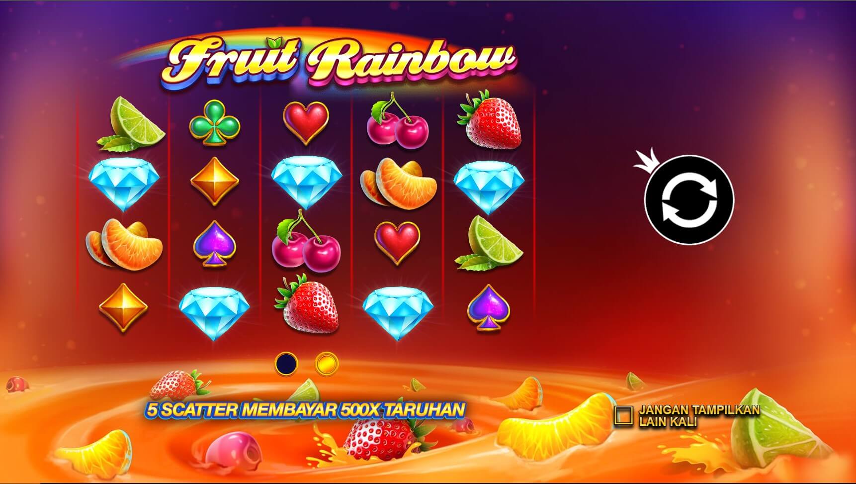 Fruit Rainbow adalah game slot yang dikembangkan oleh Pragmatic Play. Seperti namanya, game ini memiliki tema buah-buahan dan memberikan nuansa yang cerah dan segar. Fruit Rainbow didasarkan pada tema buah-buahan dengan latar belakang yang berwarna-warni dan ceria. Simbol-simbol dalam game ini mencakup berbagai jenis buah seperti ceri, jeruk, anggur, semangka, dan lemon. Game ini menggunakan format gulungan klasik 5x3 dengan 40 jalur pembayaran yang tetap. Pemain akan mencoba mencocokkan simbol-simbol buah di jalur pembayaran untuk memenangkan hadiah. Fruit Rainbow mungkin menawarkan fitur-fitur seperti putaran bonus, putaran gratis, dan simbol liar (wild) yang membantu dalam menciptakan kombinasi yang menang. Fruit Rainbow menampilkan desain grafis yang cerah dan sederhana dengan animasi yang halus ketika gulungan berputar atau saat terbentuknya kombinasi kemenangan. Efek suara yang sederhana juga dapat dihadirkan untuk meningkatkan pengalaman bermain.