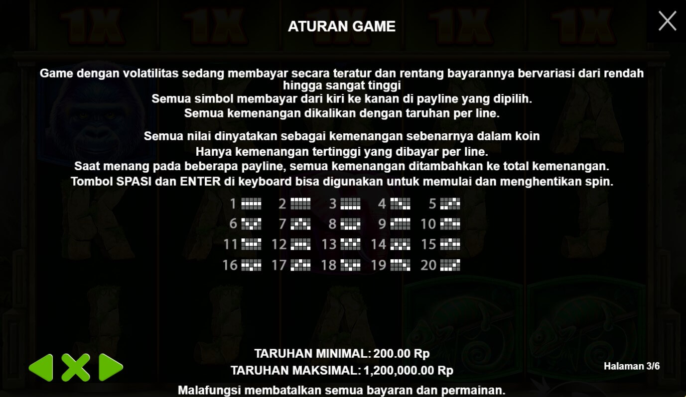 Jungle Gorilla adalah game slot yang dikembangkan oleh perusahaan perangkat lunak Pragmatic Play. Game ini mengusung tema hutan rimba dan menceritakan tentang kehidupan gorila di alam liar. Jungle Gorilla menghadirkan atmosfer yang mengagumkan dari hutan rimba dengan desain yang terinspirasi oleh kehidupan gorila. Simbol-simbol dalam game ini mencakup gorila, buah-buahan eksotis, serta simbol-simbol kartu remi yang dihiasi dengan elemen-elemen alam. Game ini menggunakan format gulungan tradisional 5x3 dengan 20 jalur pembayaran yang dapat diaktifkan. Pemain akan mencoba mencocokkan simbol-simbol yang sesuai di jalur pembayaran untuk memenangkan hadiah. Jungle Gorilla menawarkan fitur-fitur khusus seperti simbol liar (wild) yang dapat menggantikan simbol lain, putaran gratis dengan pengganda (multiplier), serta fitur "Gorilla Feature" yang memungkinkan gulungan-gulungan tertentu berubah menjadi simbol yang sama untuk meningkatkan peluang kemenangan. Jungle Gorilla menampilkan desain grafis yang menarik dengan latar belakang yang memperlihatkan pemandangan hutan rimba yang lebat. Simbol-simbol yang digunakan dalam game ini memiliki desain yang kaya dan memberikan nuansa alam liar yang menegangkan. Animasi yang halus digunakan saat gulungan berputar atau saat terbentuknya kombinasi kemenangan.