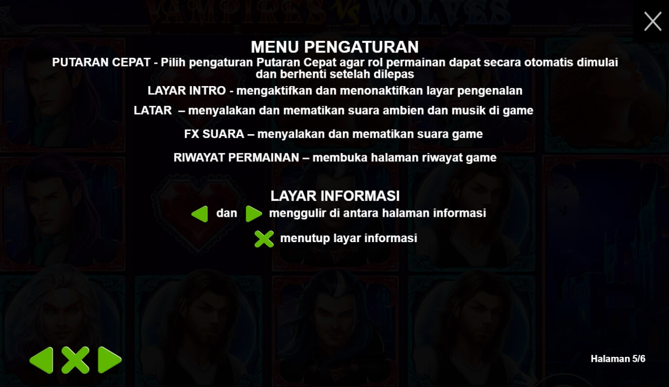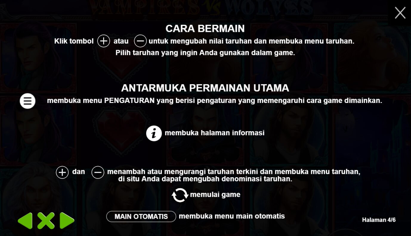 Vampires Vs Wolves adalah game slot yang dikembangkan oleh perusahaan perangkat lunak Pragmatic Play. Game ini mengusung tema peperangan antara vampir dan serigala, dengan desain yang gelap dan misterius Vampires Vs Wolves menghadirkan atmosfer gotik yang khas dengan sentuhan supernatural. Simbol-simbol dalam game ini mencakup karakter-karakter vampir dan serigala, serta elemen-elemen yang terkait dengan dunia kegelapan seperti lilin, kalung berlian, simbol-simbol kartu remi yang dihiasi dengan motif-motif misterius, dan banyak lagi.Game ini menggunakan format gulungan tradisional 5x3 dengan 10 jalur pembayaran yang dapat diaktifkan. Pemain akan mencoba mencocokkan simbol-simbol yang sesuai di jalur pembayaran untuk memenangkan hadiah. Vampires Vs Wolves menawarkan fitur-fitur khusus seperti simbol liar (wild) yang dapat menggandakan kemenangan, putaran gratis dengan pilihan karakter vampir atau serigala yang memiliki fitur khusus, serta fitur "Mystery Symbols" yang dapat mengubah simbol-simbol menjadi simbol yang sama.